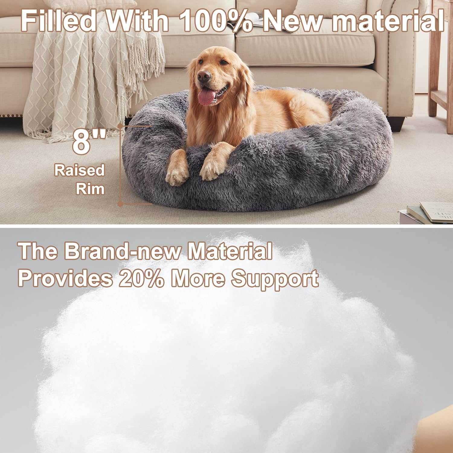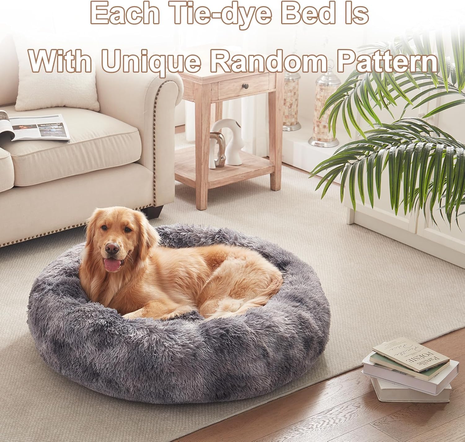 36 inches Donut Dog Bed for Large Dogs – Calming Fluffy Round Pet Bed with Removable & Washable Cover,Fits up to 80 lbs Pets (Tie-dye Grey,Large)