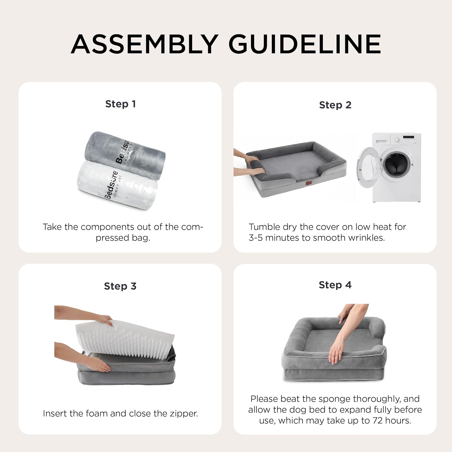 Bedsure Orthopedic Dog Bed Medium Size Dogs – Washable Small Medium Dog Cat Bed Waterproof, Comfort Cats Couch Sofa with Washable Removable Cover, Pets Bed with Nonskid Bottom, Grey, 28″