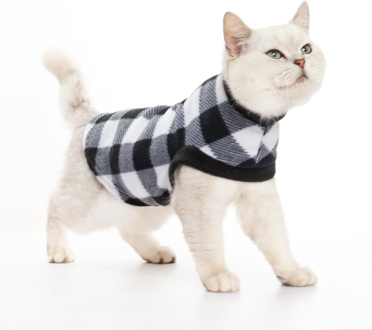 EXPAWLORER Plaid Cat Sweater – Pet Clothes Cat Puppy Vest Warm Fleece Hoodie for Cats, Fall and Cold Winter Coat Pullover Design, Buffalo Checked Sweatshirt Clothing Also for Small Dogs