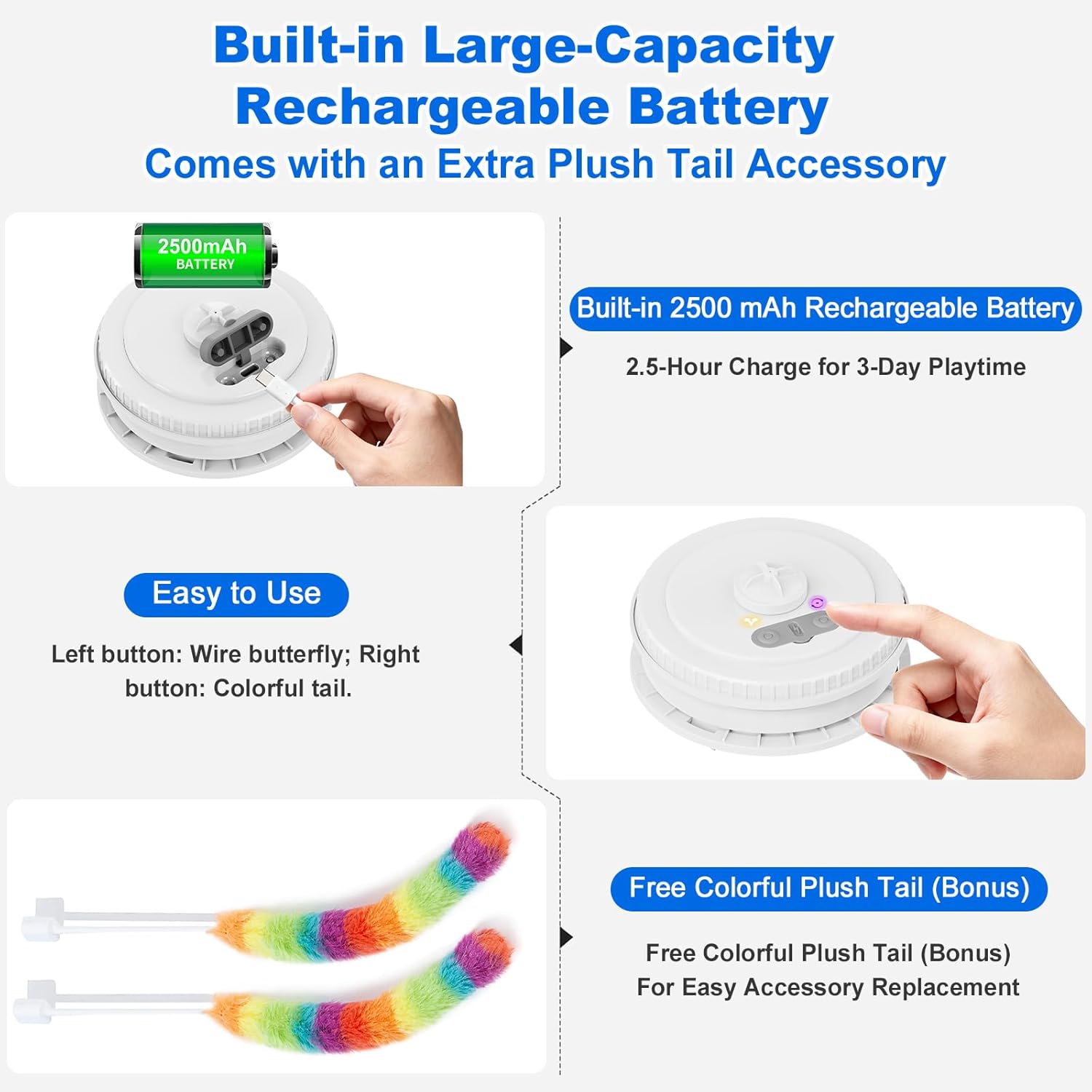 Interactive Cat Toys for Indoor Cats,[Newly Upgraded] Rechargeable Touch Activated Hide and Seek Kitten Toys for Bored Indoor Adult Cats with Fluttering (Blue)