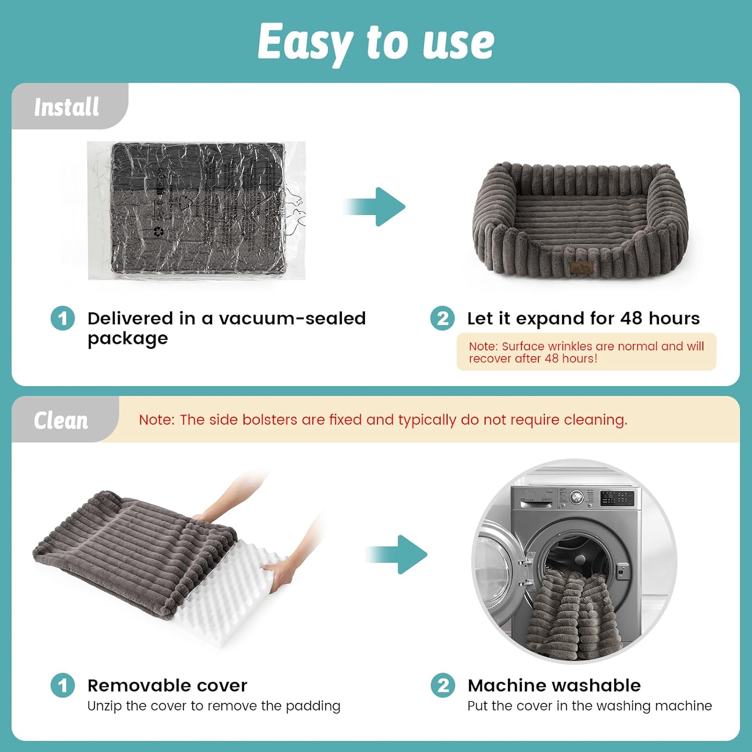 Orthopedic Dog Bed for Small Dogs & Cats – Washable Rectangle Pet Bed with Anti-Slip Bottom, Soft Calming Cat & Puppy Bed for Indoor Pets (25″x21″x6″, Grey)