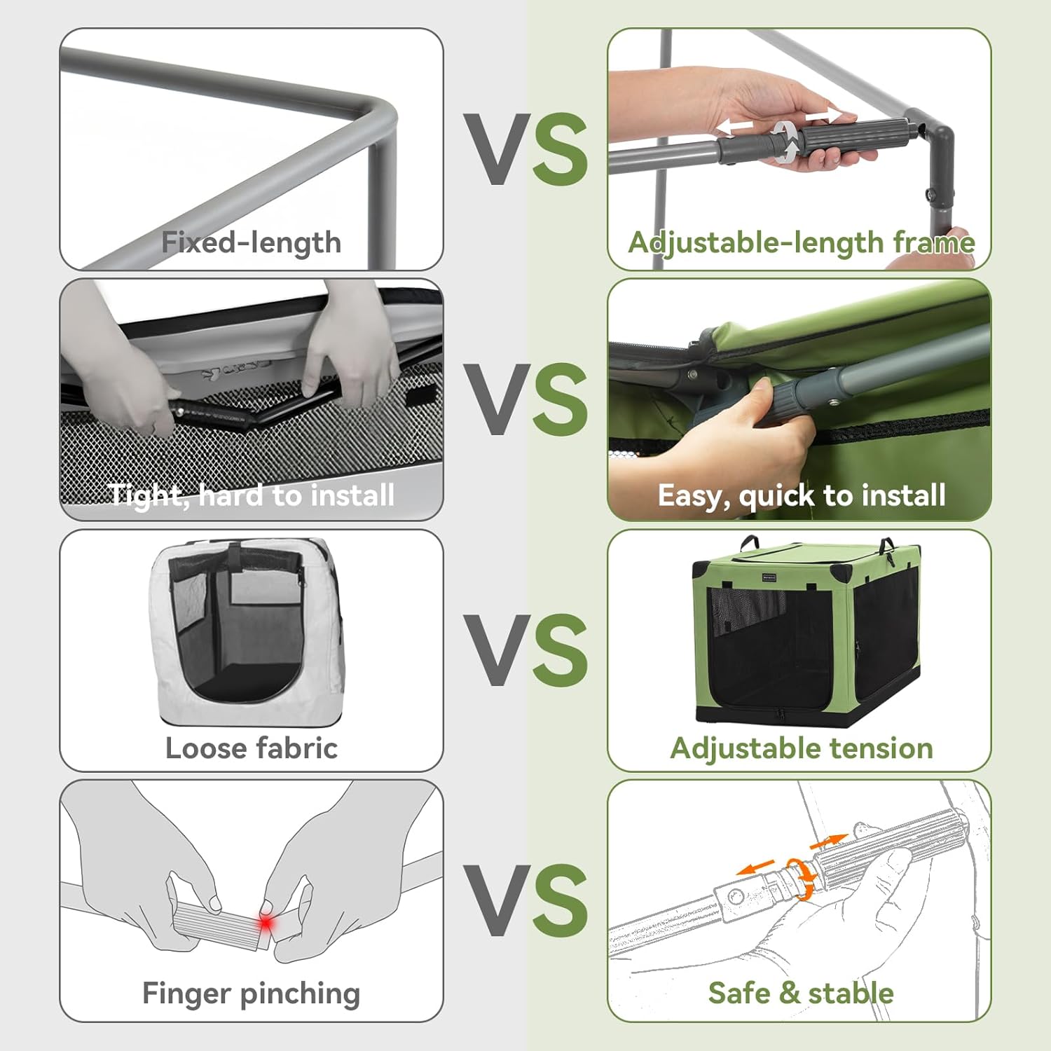 PETSFIT 30″ Soft Portable Dog Crate – Patented Spiral Sturdy Frame, Collapsible Travel Kennel for Medium Dogs, 3 Mesh Door, Lockable Zippers, Indoor & Car Use Green